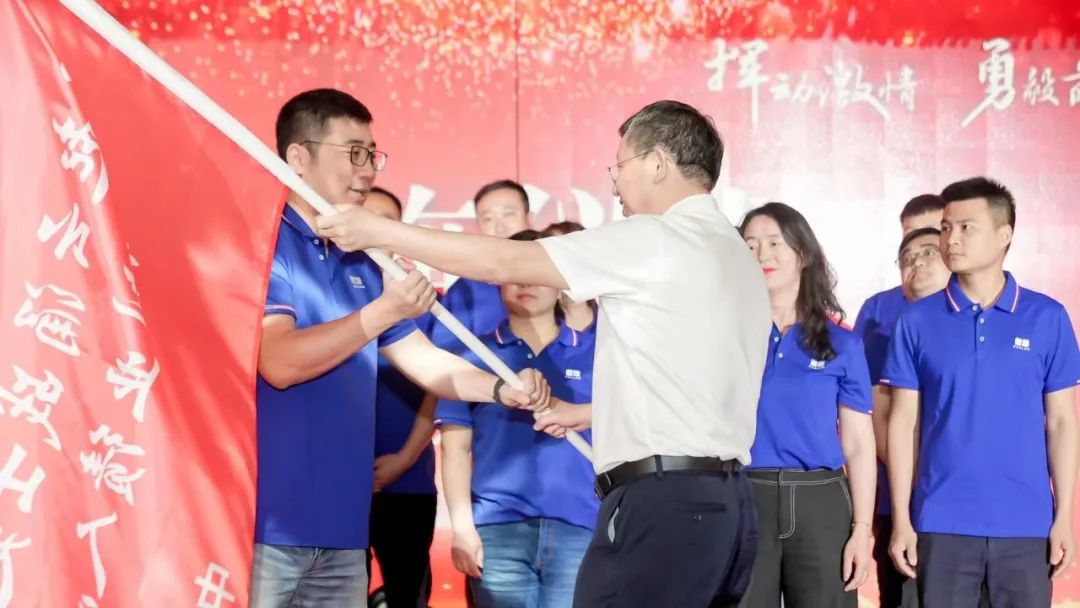 公司根據(jù)產(chǎn)品結(jié)構(gòu)和市場實(shí)際,重新調(diào)整了營銷總監(jiān)分工,成立了北部、中部、南部三個(gè)戰(zhàn)區(qū),使管理垂直、效率更高、責(zé)任更明。董事長、總經(jīng)理陳益智為三個(gè)戰(zhàn)區(qū)授旗,大家紛紛表示,克服困難,勇毅前行,堅(jiān)決完成公司制定的營銷目標(biāo)。