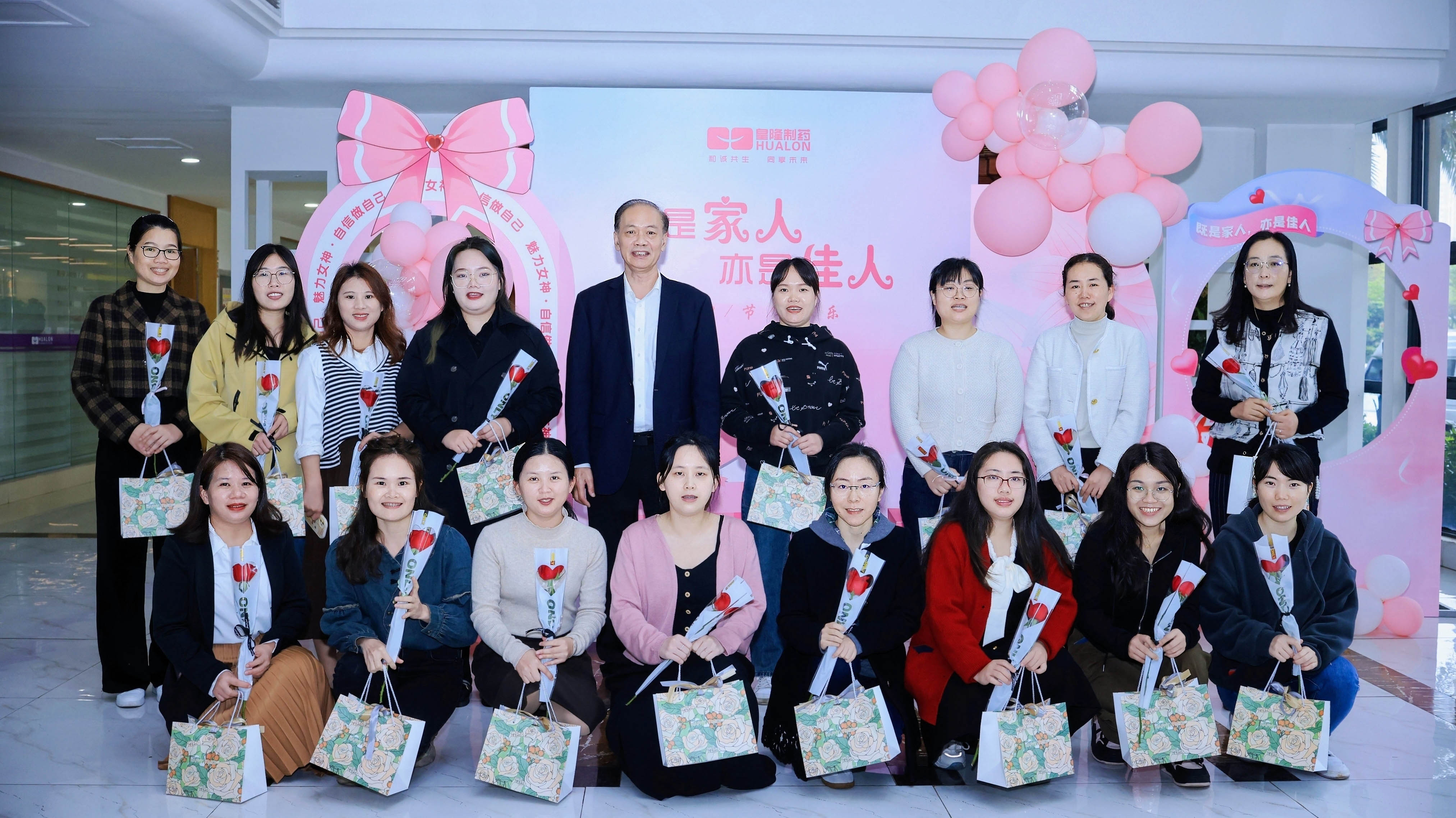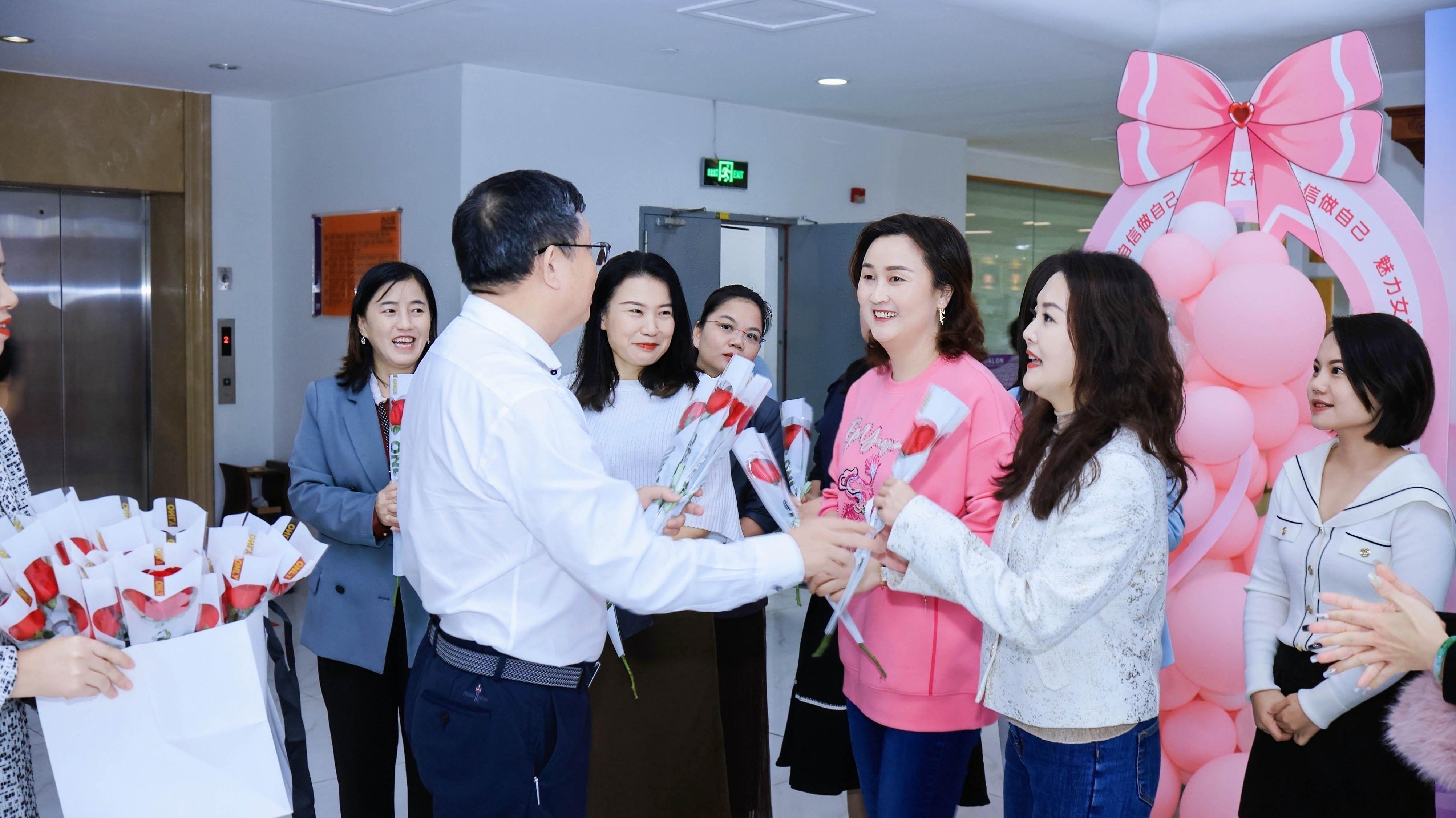 隨后,在陳總帶領(lǐng)下,何晶、肖俊南、陳峙托、李周龍、陳國華等領(lǐng)導(dǎo)逐一給全體女職工們送上表示親切慰問的鮮花和祝福的巧克力。